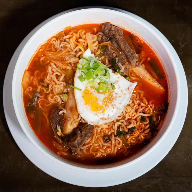 Spicy | Kimchi, pork, and tofu in a spicy broth.
